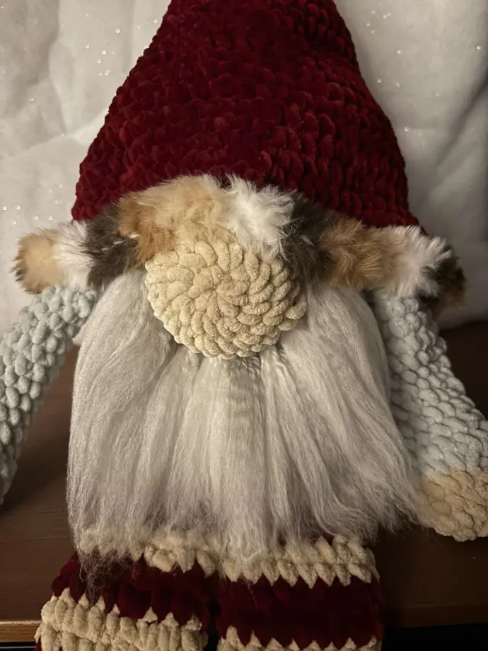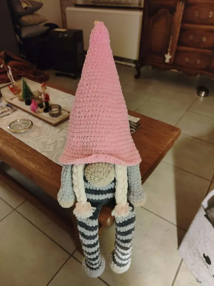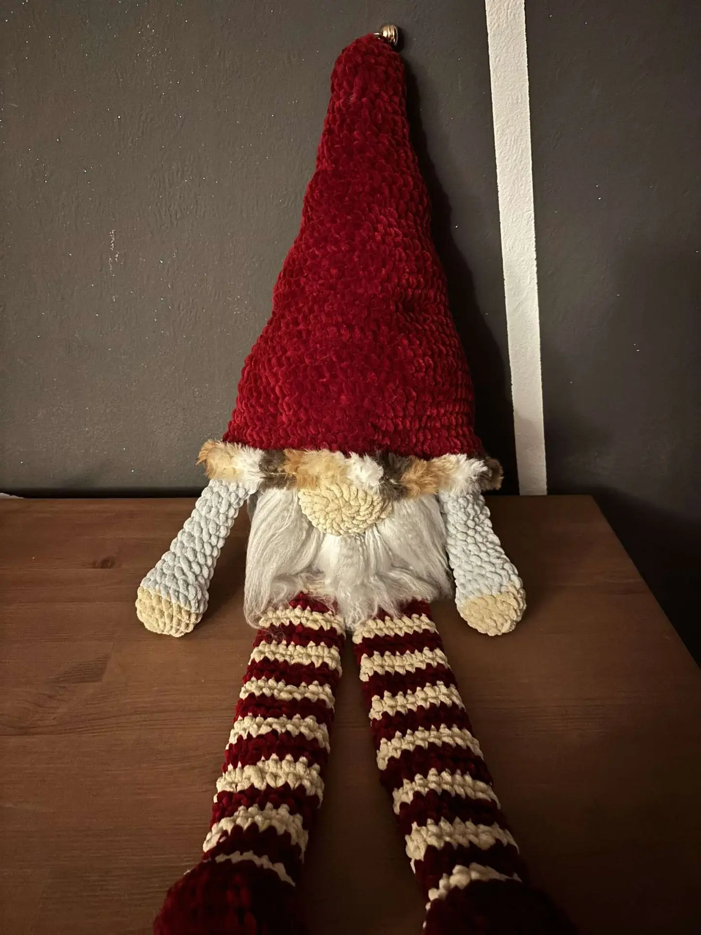 Avec mon bonnet rouge bien pointu et mes jambes rayées en mode festif, je suis prêt à veiller sur vos fêtes de fin d’année. Un compagnon tout doux pour une déco magique et pleine de charme